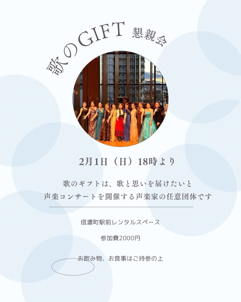 歌ったり、語ったりと歌のGIFTのメンバーと過ごしませんか?場所は、信濃町駅前すぐのレンタルスペースです。