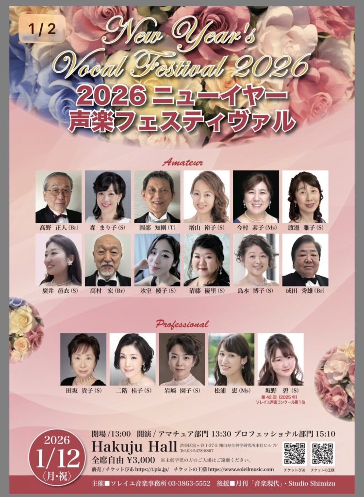 第5回「春の声」声楽コンクールプロフェッショナル部門入選。